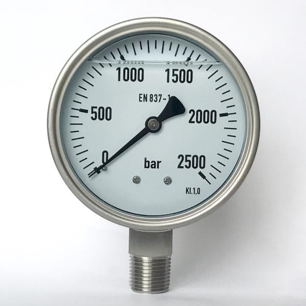 4" 2500 bar Bayonet Ring Manometer SUS 316 Tube/Socket 1/2 BSP All Stainless Steel Pressure Gauge